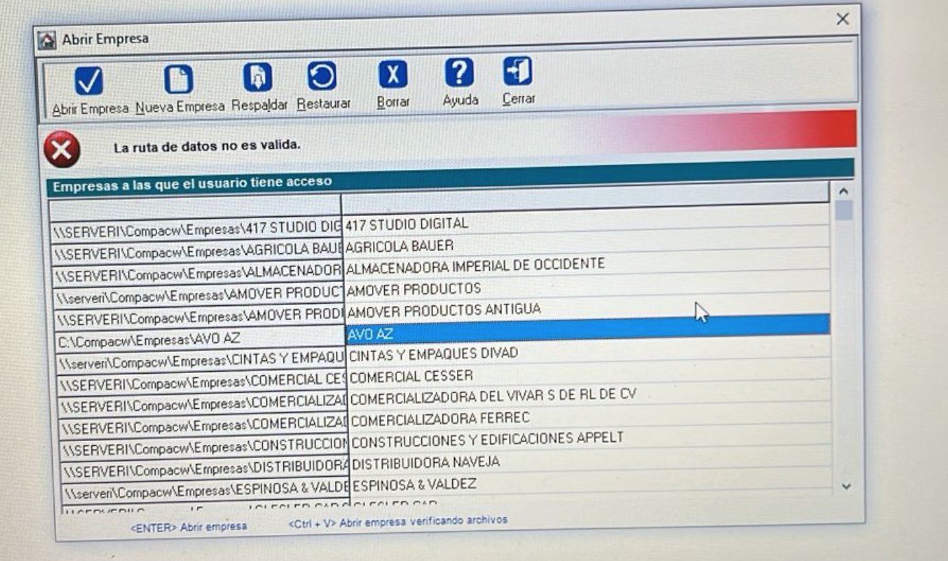 se debe modificar la ruta de la empresa de C: a \\(Nombre del servidor).